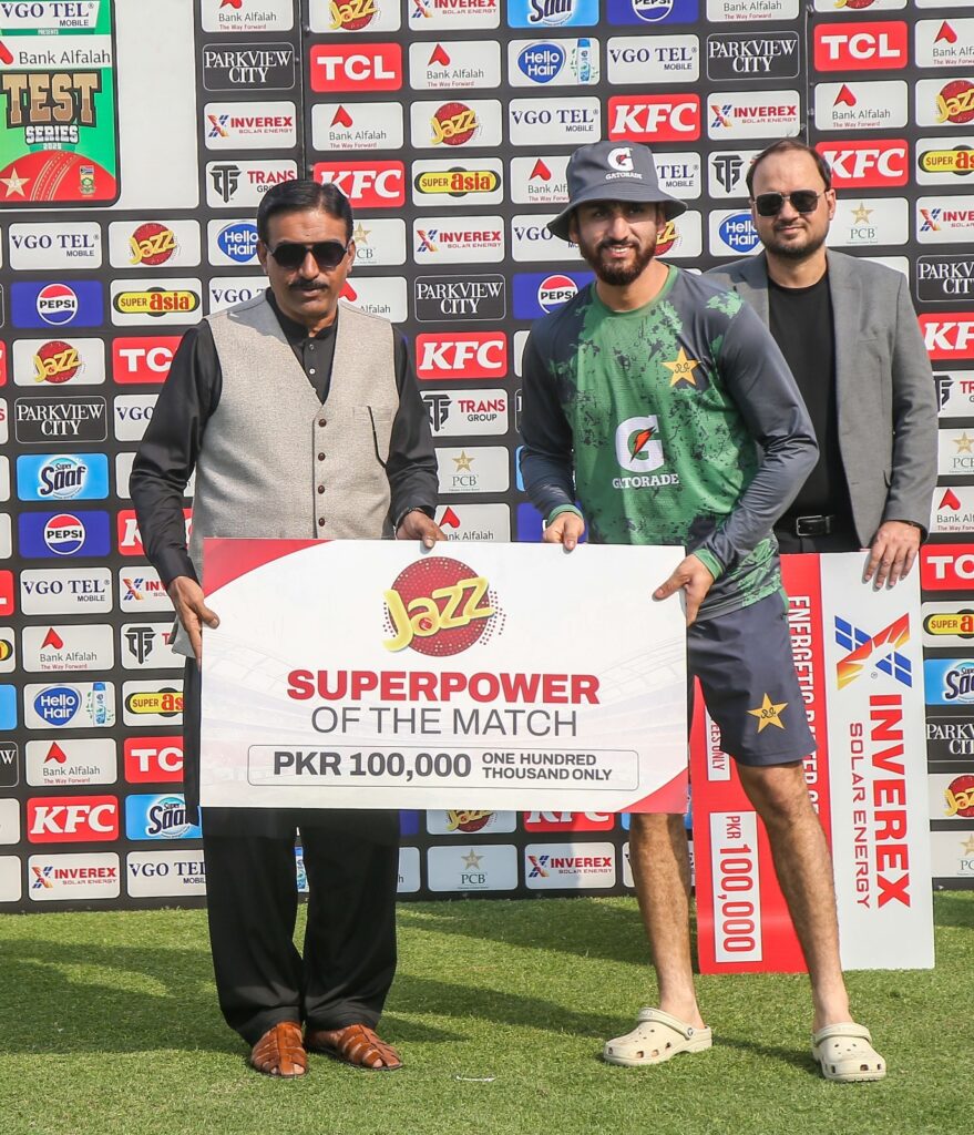 نعمان علی اور شاہین آفریدی نے چارچار کھلاڑیوں کو آوٹ کیا۔ ساجد خان نے دو وکٹیں حاصل کی۔ٹیسٹ کرکٹ سیشن اور پاٹنر شپ کی گیم ہے۔ پاکستان کی پہلی اننگز میں بھی دو پاٹنر شپس بنی تھی امام ااور شان مسعود کے درمیان 161اور رضوان اور سلمان آغاکے درمیان سکورنگ میچ میں ٹرننگ پوائنٹ تھا۔