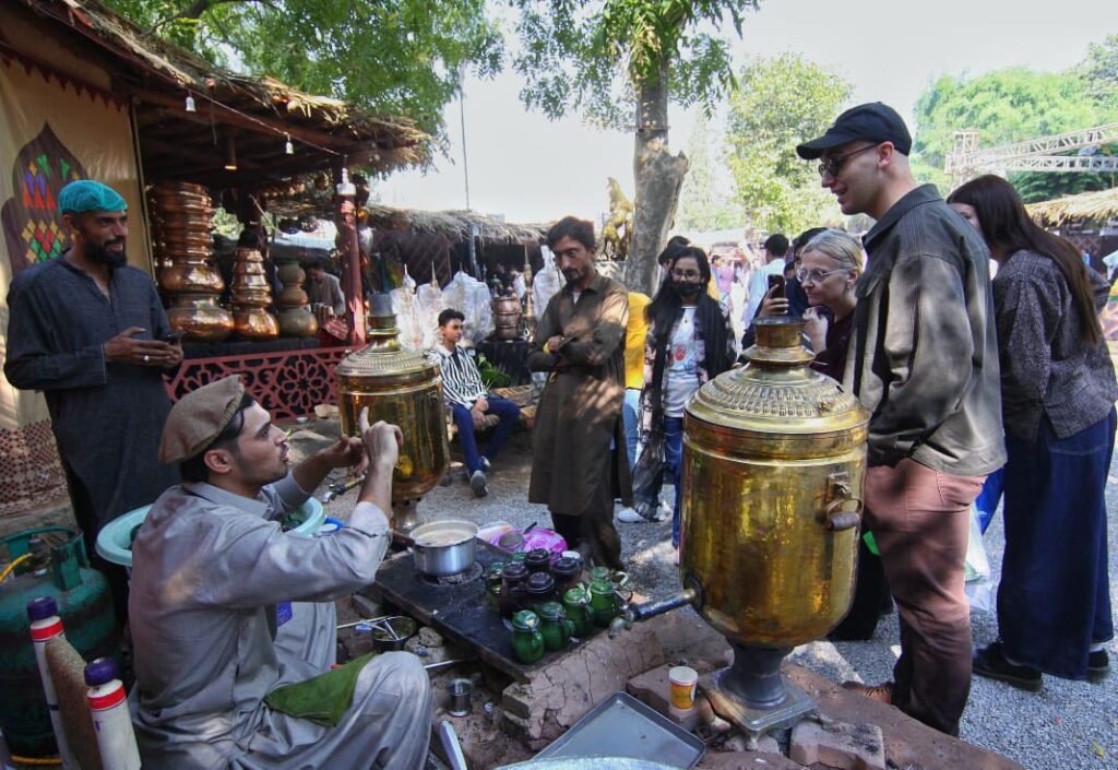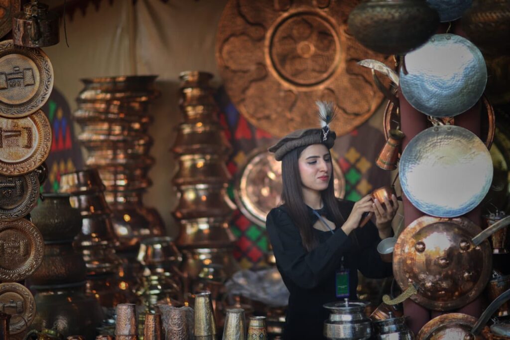 خیبرپختونخوا پویلین میں ہنرمندوں کیلئے 30 سے زائد دستکاری و ثقافتی اشیا کے اسٹالزجن میں موزیک آرٹ، میزاری کا کام، سلام پورشال، مغل آرٹ، لیکر آرٹ، دستکاری اشیا، چترالی اشیا، محکمہ جیل خانہ جات خیبرپختونخوا میں قیدیوں کے ہاتھوں سے بنی اشیا کا سٹال، خصوصی افراد کے ہاتھوں سے بنی اشیا کا سٹال، لکڑی آرٹ، ریشم کا کام، روایتی ہاتھوں سے بنے بیگز، چارسدہ چپل، کنڈی کام،لیکر آرٹ، جناح کیپ، ہینڈی کرافٹ، مٹی کے برتن کیساتھ ساتھ صوبے کے مشہور روایتی کھانوں کے سٹالز بھی سیاحوں کی توجو کا مرکز رہیں۔