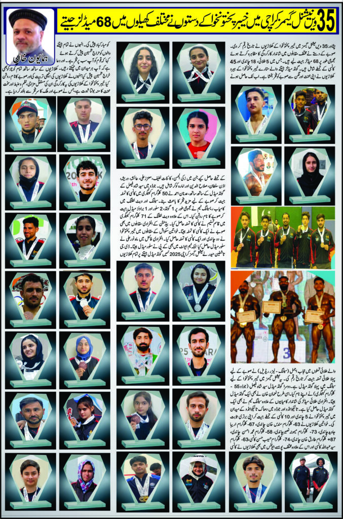 Pakistan Sports World 35ویں نیشنل گیمزکراچی میں خیبر پختونخوا کے دستوں نے مختلف کھیلوں میں 68 میڈلز جیتے Laiba Ahmad December 13, 2025 About the Author Laiba Ahmad Administrator View All Posts Post navigation Previous: پشاور شہر کے تاجران کے نمائندہ وفد نے گورنر خیبرپختونخوا فیصل کریم کنڈی سے ملاقات Leave a Reply Cancel replyYour email address will not be published. Required fields are marked *Comment * Name * Email * Website Save my name, email, and website in this browser for the next time I comment. Related Stories Pakistan پشاور شہر کے تاجران کے نمائندہ وفد نے گورنر خیبرپختونخوا فیصل کریم کنڈی سے ملاقات Laiba Ahmad December 12, 2025 0 Pakistan Sports World پاکستانی کک باکسنگ ورلڈ کپ کے ونر حمیداللہ کی گورنر سے ملاقات Laiba Ahmad December 12, 2025 0 4 minutes read Pakistan World Weather & terrorism Laiba Ahmad December 12, 2025 0